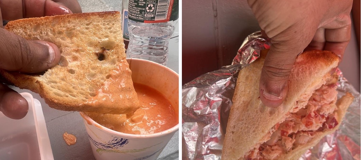 The lobster sandwich stands out as the must-try dish. It's packed with real lobster meat and comes on white bread—a classic choice that reflects the simple yet delightful New England style.